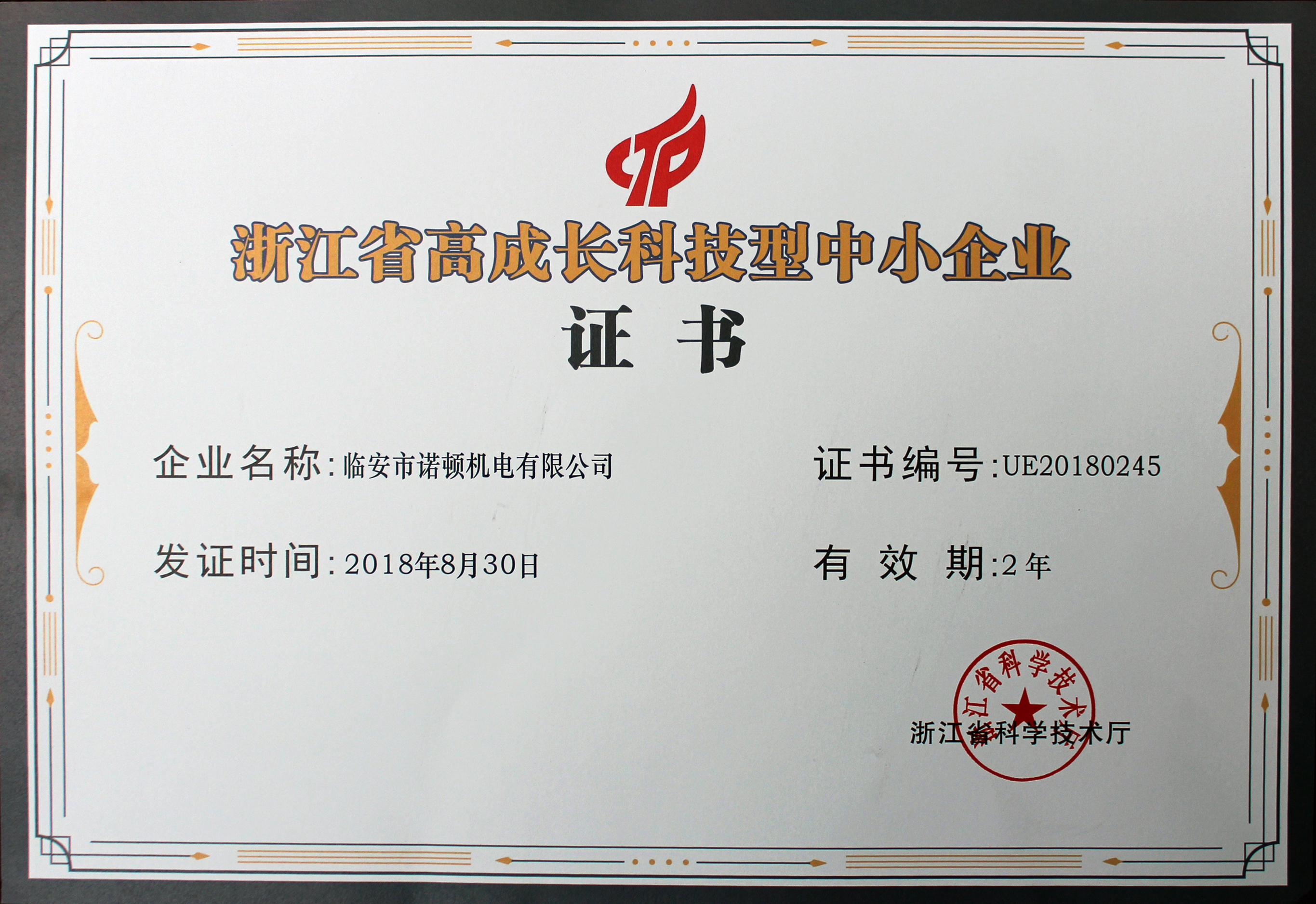 祝賀諾頓公司獲評“浙江省高成長科技型中小企業(yè)”